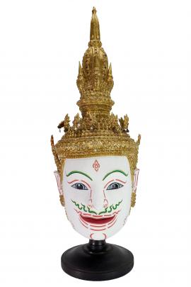 หน้าพระสีขาว สวมมงกุฎน้ำเต้า 5 ยอด เป็นเทพคนธรรพ์ เป็นเทพเจ้าแห่งวิชาการดนตรี คือบัณเฑาะว์และพิณหรือกระจับปี่