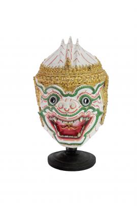 หน้าวานรปากอ้า สีขาวผ่อง หัวโล้น สวมมาลัยทอง มีเขี้ยวแก้วอยู่กลางเพดานปาก นอกจากนี้ยังมีการทำหัวโขนหน้าหนุมานอีกหลายแบบใบหน้าเป็นตอนแผลงฤทธิ์มี 4 หน้า เป็นหน้าปรกติ 1 หน้า และมีหน้าเล็ก 3 หน้า ที่ด้านหลัง เป็นบุตรพระพายกับนางสวาหะ