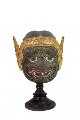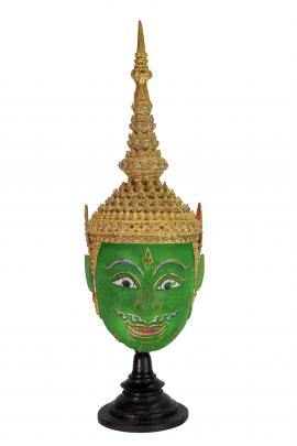 ทำเป็นหน้ายักษ์ 3 ชั้น คือ ชันแรกมีหน้าปรกติ 1หน้า และมีหน้าเล็ก ๆ เรียงกัน 3 หน้าตรงท้ายทอย ชั้นที่ 2 ทำเป็นหน้าเล็ก ๆ 4 หน้า เรียงสี่ด้าน ชั้นที่ 3 ทำเป็นหน้าพรมด้านหน้า หน้ายักษ์ด้านหลัง ปากแสยะ ตาโพลง สวมมงกุฎยอดชัย หน้าทศกัณฐ์มี 3 สี ปรกติใช้หน้าสีเขียว ตอนนั่งเมืองใช้หน้าสีทอง และมีหน้าสีน้ำรัก ยังไม่มีปรากฏใช้ในการแสดง