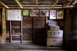 ในเฮือนนอน มีการจัดแสดงลักษณะการนอนของชาวบ่อสวก มีตั่งวางอยู่กลางห้อง และมีเครื่องนอนวางอยู่บนตั่ง คล้ายกับกั่นห้องออกเป็นสองฝัง เวลานอนสมาชิกครอบครัวก็จะเอาเครื่องนอนมาปู โดยลูกสาวจะนอนอยู่ด้านในของตั่ง ส่วนพ่อแม่จะนอนอีกฟาก ส่วนลูกชายจะไปนอนที่นอกห้อง คอยเฝ้าระวังภัย และคอยเฝ้าสัตว์เลี้ยง อย่างวัว ซึ่งจะมีกะโล๊กไม้ไผ่ห้อยคอคอยส่งเสียง ให้รู้ว่าสัตว์เลี้ยงยังอยู่ใต้เฮือน ที่พื้นชานเฮือนตีด้วยไม้ให้ห่างๆ พอจะเห็นสิ่งต่างๆ ใต้เฮือนได้ ซึ่งการตีไม้ห่างๆ นี้ มีเกร็ดเล่าว่า ยามหญิงสาวออกมาทำกิจกรรมอย่างทอผ้า ที่ชานเฮือนนี้ หนุ่มก็จะมาเกี้ยว โดยพยายามยื่นมือมาให้หญิงสาวได้สื่อสารกัน ตามช่องพื้นชานเฮือน