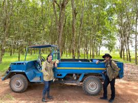 ชาวบ้านบอกว่ามันชื่อรถอีแต๊ก น่าจะเป็นรถที่ผู้ขับหรือรถเพศเมีย 55555 เพราะมีคำว่าอี และชื่อของมันช่างสะท้อนตัวตนบนความเป็นอีแต๊กได้เป็นอย่างดี เพราะเวลาที่มันแล่นไปบนท้องถนน เสียงเครื่องยนต์ที่ดังก้องบนถนน บนคันนา บนเนินเขา ดัง“ต๊อก ๆ แต๊กๆ”นั้น คงเป็นที่มาของชื่อ ผู้ใหญ่บ้านเชียงยืนบอกว่า รถอีแต๊ก ก็ระบบรถกระบะนั่นแหละแต่นำมาดัดแปลงให้ขนของได้มาก ขึ้นดอย บุกป่า ลุยน้ำ ได้ ไปทุกสถานที่ โดยใช้เป็นรถในเทือกสวนไร่นากัน ที่เห็นได้ประจำ แต่คันนี้เป็นรถประจำหมู่บ้าน ก็นำมาใช้ประโยชน์ส่วนรวมมากกว่าวันนี้รถอีต๊อกนอกจากจะถูกใช้วิ่งงานตามจุดประสงค์หลักแล้ว ยังโดนนำมาให้พวกเรา ได้ขึ้นไปนั่งสวยๆ และนำทางเรา ลัดเลาะ เขตชุมชนบ่อสวก เข้าไปยังเขตพื้นที่ป่า สองข้างทางเต็มไปด้วยความเป็นชุมชน ความเป็นวิถีบ่อสวก นำพาผู้โดยสารถึงจุดหมายอย่างปลอดภัย ตีนดอยภูสะงึด และจะไปรอรับอีกทีที่ทางลงตีนดอยภูสะงึดอีกฝั่งหนึ่งของป่า พร้อมด้วยของกิน และน้ำเย็นๆ ดื่มให้หายเหนื่อยจากการเดินศึกษาเส้นทางธรรมชาติบนดอยภูงึด ประมาณ 4 กิโลแม้ว 555555 เป็นพาหนะที่ต้องลองมานั่งสัมผัส วิถีบ่อสวกสักครั้ง