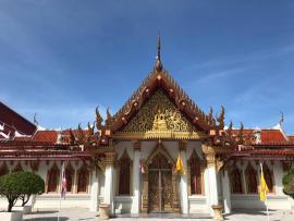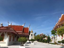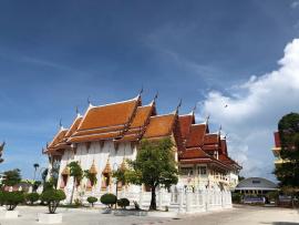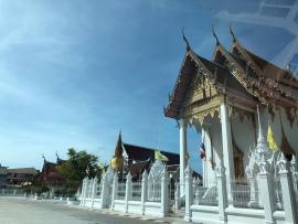 เมื่อท่านอาจารย์นะได้พระบรมสารีริกธาตุสมควรตั้งใจแล้ว ได้กราบลาสมเด็จพระสังฆราชและลาท่านเศรษฐีอัญเชิญพระบรมสารีริกธาตุพร้อมด้วยต้นโพธิ์ทอง 3 ต้น เดินทางกลับประเทศไทย โดยท่านเศรษฐีฝากให้โดยสารมากับเรือสินค้าของชาวฝรั่งเศส เรือมาแวะขนถ่าย สินค้าที่เมืองท่าสิงคโปร์เป็นเวลาหลายวัน พอดีอาจารย์นะได้พบกับพ่อค้าคนจีนซึ่งไปติดต่อซื้อสินค้าจากเรือ ที่ท่านโดยสารมา สอบถามได้ความว่าชื่อ เส้ง เป็นจีนฮกเกี้ยน อยู่ที่อำเภอปากพนัง จังหวัดนครศรีธรรมราช อาจารย์นะจึงได้ขอโดยสารเรือมาขึ้นที่เมืองสงขลา