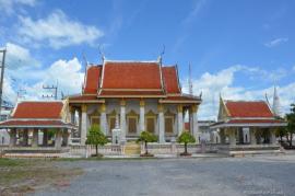 วิหารพระพุทธไสยาสน์หรือที่ชาวบ้านเรียกว่าวิหารพ่อเฒ่านอน เป็นวิหารพระพุทธไสยาสน์ สร้างโดยการก่ออิฐถือปูนสันนิฐานว่าน่าจะสร้างในสมัยอยุธยา และได้รับการบูรณะปฏิสังขรณ์ขึ้นใหม่ ในรัชสมัยพระบาทสมเด็จพระจุลจอมเกล้าเจ้าอยู่หัว (ร. ๕) หน้าบันวิหารบริเวณด้านหน้าประดับด้วยปูนปั้นรูปพระอินทร์ทรงช้างเอราวัณ ตอนล่างมีรูปยักษ์แบกเทวดา และลายไท ส่วนด้านล่างมีรูปยักษ์แบกเทวดา และลายไท ส่วนด้านหลังประดับปูนปั้นรูปนารายณ์ทรงครุฑในปี ๒๕๒๐ ก็ได้บูรณะใหม่อีกครั้ง ภายในวิหารประดิษฐานองค์พระพุทธไสยาสน์ ก่ออิฐถือปูนยาว ๑๔ เมตร สูง  ๒ เมตร ชาวบ้านเรียกว่า “พ่อเฒ่านอน” ลักษณะนอนตะแคงขวาพระหัตถ์ขวาหนุนพระเศียร สันนิษฐานว่าเป็นศิลปะศรีวิชัยที่สร้างเลียนแบบศิลปะคุปตะผนัง ภายในวิหารมีภาพเขียนเป็นเรื่องพุทธประวัติ เช่น ตอนเสด็จไปโปรดพุทธมารดา และตอนเสด็จลงจากสวรรค์ชั้นดาวดิงส์ภาพผจญพระยามารภาพเสด็จออกมหาภิเนษกรมณ์ เป็นฝีมือช่างท้องถิ่นสามคน คือพระครูวิจารณ์ศีลคุณ (ชู) นายเกลื่อน และนายช่างใบ้ โดยเขียนภาพด้วยสีขาว เทา ฟ้า เขียว ระบายสีบาง ๆ ตัดเส้นด้วยสีอ่อนบนพื้นสีเหลืองอ่อน ส่วนจิตรกรรมอื่น ๆ เช่น ภาพวิถีชีวิตของชาวบ้านในบริเวณคาบสมุทรสทิงพระ
