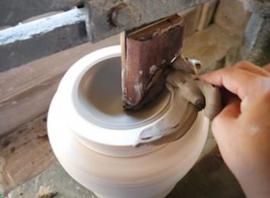 การปั้นด้วยเครื่องจิ๊กเกอร์ ใช้ระบบมอเตอร์หมุน และแม่พิมพ์ก็มีขาชามอยู่ในตัว มีใบมีดติดอยู่กับคันเหล็กสามารถควบคุมความหน้าได้เท่ากันทุกด้านและทุกใบจึงไม่จำเป็นจะต้องทำปากชามให้เป็นแบบเหลี่ยมเหมือนการปั้นแบบโบราณ กำลังการผลิตต่อวันอยู่ที่ 300 ใบ ขั้นตอนต่อมาคือการเช็ดแต่งและการเคลือบ เพื่อดูความเรียบร้อยทั่วไป แห้งแล้วจึงนำชามไปชุบในน้ำยาเคลือบซึ่งมีส่วนผสมของหินฟันม้าและหินควอทซ์ซึ่งเมื่อเผาแล้วจะกลายเป็นเนื้อแก้วเคลือบบนเนื้อเซรามิคให้เกิดความสวยงามและล้างทำความสะอาดง่าย ซึ่งเคลือบเราจะมี 2 แบบคือเคลือบแบบปัจจุบันที่ใช้แร่ดังกล่าว และการใช้เคลือบจากขี้เถ้าแกลบที่จะให้สีอมเขียวเป็นเคลือบแบบโบราณ จากนั้นนำชามไปเผาที่อุณหภูมิ 1,260 องศาเซลเซียสจนสุกตัว