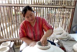 การปั้นชามไก่แบบโบราณ ซึ่งแต่ก่อนนั้นยังไม่มีไฟฟ้าใช้จึงใช้ล้อจักรยานพอกด้วยปูนพลาสเตอร์ให้หนาเพื่อที่จะให้มีแรงเหวี่ยง การปั้นเริ่มจากการใส่พิมพ์ลงไปในแป้นหมุนแล้วทำดินให้เป็นแผ่นเหมือนโรตีแล้ววางลงในแม่พิมพ์จากนั้นใช้ไม้แบบโค้ง เรียกว่า ไม้ไกด์ จุ่มน้ำแล้วรีดให้ได้ความหนาตามที่ต้องการ จากนั้นตัดปากเอาดินส่วนที่เกินออก ทิ้งไว้ให้หมาดเพื่อจะนำมาต่อขาชาม ด้วยการขูดก้นชามด้านนอกให้เป็นรอเพื่อจะให้ขายึดกับตัวถ้วยได้ดียิ่งขึ้น จากนั้นปั้นขาชามเป็นเส้นแล้วนำมาขดติดกับก้นถ้วย ใช้ผ้าชุบน้ำรีดขาถ้วยให้กลมและสูงมากพอเสร็จแล้วผึ่งไว้ให้แห้ง กำลังการผลิตต่อคนทำได้วันละประมาณ 30 ใบ แต่หากมีออร์เดอร์มากก็จะใช้คนสองคน โดยคนหนึ่งมีหน้าที่เหวี่ยงแป้นอีกคนเป็นคนปั้นก็จะเร็วขึ้นมากกว่าสองเท่า