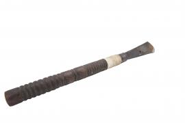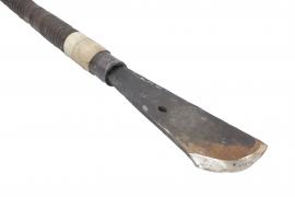 มีดกลึงหัวร่ม มี 2 รูปแบบ ในรูปแบบแรกจะมีลักษณะคล้ายกับเสียม ใช้สำหรับเหลาไม้กระท้อนที่เป็นท่อนสี่เหลี่ยมให้มีความเรียบ รูปแบบที่สองมีลักษณะคล้ายมีดธรรมดาแต่ตรงปลายจะโค้งมนมีความแหลมคมไว้สำหรับลงรายละเอียดของหัวร่ม เมื่อลงมีบนไม้ที่อยู่บนแท่นกลึง ความมนของมีด จะพลิ้ว โค้งไปกับลักษณะของไม้ ที่หมุนอยู่ ที่ให้กลึงได้ง่านขึ้น ซึ่งปลายมีดที่แหลมคมของมีดกลึงหัวร่มทั้ง 2 รูปแบบจะทำมาจากเหล็กแหนบรถยนต์เท่านั้น เพราะเป็นเหล็กที่มีความคงทน