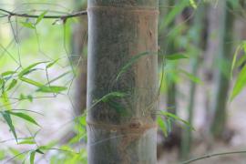 เป็นไม้ไผ่หน่ออัดใบ ลำต้นสีเขียวอ่อน ไม่มีหนาม ผิวเป็นมัน เนื้อไม้หยาบ