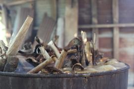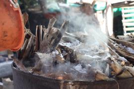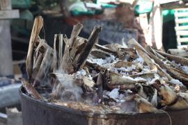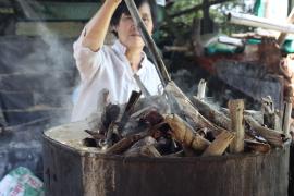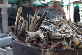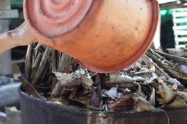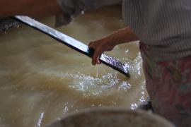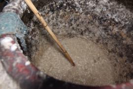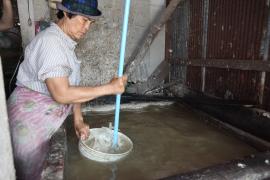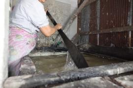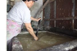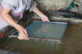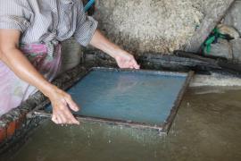 ขั้นตอนการทำกระดาษสาจากเปลือกต้นสา เริ่มจากการใช้ไฟรนต้นสาเพื่อจะได้นำเปลือกสาออกมาได้ง่าย เมื่อได้เปลือกสาแล้วจะนำไปแช่น้ำทิ้งไว้ 24 ชั่วโมง เสร็จแล้วนำไปต้มกับโซดาไฟประมาณ 3-4 ชั่วโมงจนเปลือกสาเปื่อย นำมาล้างน้ำสะอาดแล้วนำมาทุบให้ละเอียดจนยุ่ย (แต่ในปัจจุบันได้มีการนำเครื่องโม่เข้ามาช่วยในการปั่นเปลือกสาให้เอียดเพื่อช่วยทุ่นแรงงานคนและประหยัดเวลาในการทำให้เปลือกสายุ่ย) แล้วจึงนำไปแช่น้ำในอ่างน้ำที่ก่อด้วยปูนซีเมนต์ 2×3 เมตร ลึก ½ เมตร ใช้ไม้คนจนทั่วให้เยื่อสาที่ตกตะกอนอยู่ด้านล่างลอยขึ้นมาบนผิวน้ำ ใช้ตะแกรงตักกระดาษสาตักเยื่อสาขึ้นมาโดยวิธีการตักเข้าหาตัว แกว่งไปมาบนผิวน้ำจนเยื่อสาเต็มแผ่นตะแกรง แล้วนำไปตากแดดจนแห้งเป็นแผ่นกระดาษสา หมายเหตุ : สมัยก่อน จะต้มกับขี้เถ้า ที่มีฤทธิ์เป็นด่าง ทำให้เปลือกสาสะอาด และทุบด้วยมือ จะได้กระดาษสาที่เหนียวและทน