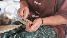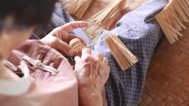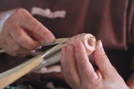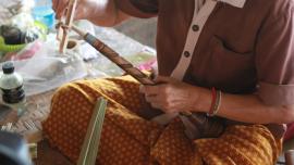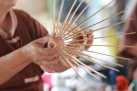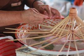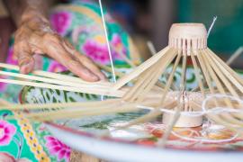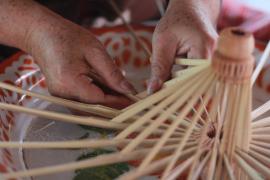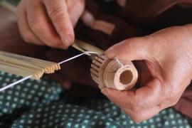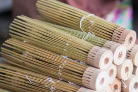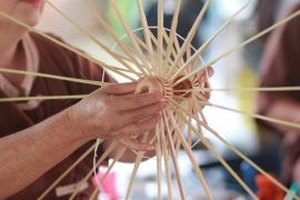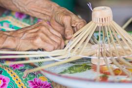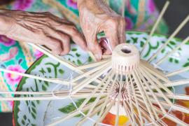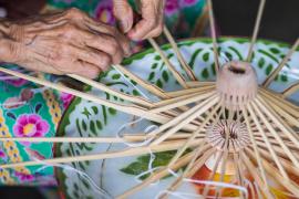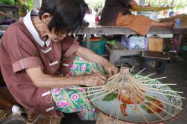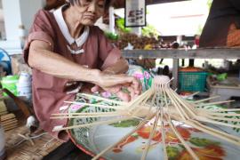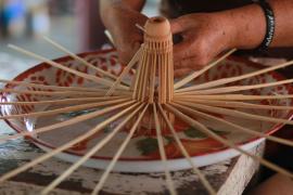โครงร่มจะประกอบด้วย 2 ส่วน หลัก คือ ซี่ค้ำและซี่กลอน โดยขั้นตอนการทำจะเริ่มจากการนำไม้ไผ่บงมาตัดเป็นท่อนๆ แล้วแต่ขนาดของร่มที่ต้องทำ เสร็จแล้วผ่าไม้เป็นซี่ๆ นำไปเหลาเป็นซี่ค้ำและซี่กลอนของร่ม โดยจะต้องเหลาให้มีความหนาบางเท่ากันทุกซี่ (ซึ่งร่มแต่ละขนาดจะมีจำนวนซี่ไม่เท่ากัน) จากนั้นใช้สว่านมือเจาะรูลงบนซี่ค้ำและซี่กลอนที่เหลาเสร็จแล้วสำหรับใช้ร้อยด้ายประกอบเข้ากับหัวและตุ้มร่มเพื่อขึ้นเป็นโครงร่ม และไว้สำหรับสนด้ายเป็นลวดลายใต้ร่ม เสร็จแล้วนำไปตากแดดจนแห้งสนิท นำไปแช่น้ำยาและตากอีกครั้งจนแห้ง เก็บไว้รอขั้นตอนการหุ้มร่ม