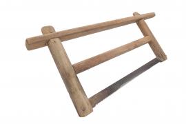 เลื่อยมือ มีลักษณะเป็นรูปทรงสี่เหลี่ยมขนาดกะทัดรัดพอดีมือ ด้านบนเป็นด้ามจับยาวออกมา ส่วนด้านล่างเป็นใบมีดหยักยาวสำหรับเลื่อยตัดไม้ไผ่ที่จะนำมาใช้ในการทำโครงร่ม