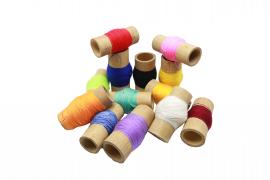มีลักษณะเป็นเส้นยาวที่ประกอบด้วยเส้นใยหลายๆเส้นรวมกัน ผิวมีลักษณะเรียบด้ายเป็นส่วนที่สำคัญอย่างหนึ่งในการทำร่มเพราะการทำร่มนั้นจะใช้ด้ายในการยึดทำโครงร่มให้แน่นหนาและแข็งแรงในส่วนประเภทของด้ายนั้นมักจะนิยมใช้ด้ายไนลอนในการยึดโครงร่มเพราะด้ายไนลอนนั้นจะมีลักษณะพิเศษก็คือมีความเหนียวและทนทาน ในส่วนของการตกแต่งโดยใช้ด้ายพันกันขึ้นลงจนเกิดลวดลายภายในซี่ค้ำนั้นมักใช้ด้ายประเภทฝ้ายหรือไหมประดิษฐ์ที่มีหลากสีในการตกแต่ง