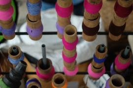 ด้าย (ฝ้าย) ใช้ขึงยึด ซี่โครง ซี่ค้ำ หัวร่ม ตุ้มร่ม และจัดช่องไฟบริเวณชายร่ม มาจากโรงปั่นฝ้าย (ด้าย) ในเขต อ.สันกำแพง
