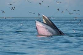 หมายเหตุ = ชีววิทยา ลักษณะภายนอกของปลาวาฬบรูด้า มีลำตัวเรียว ผิวหนังเรียบ ครีบหลัง (Dorsal fin) มีขนาดเล็กอยู่ค่อนไปทางส่วนหาง มีซี่กรอง (Baleen plates) สำหรับกรองอาหารอยู่บนขากรรไกรบน ใต้คางมีร่อง (Throat grooves หรือ Ventral Pleats) ร่องใต้คางนี้จะขยายออกในขณะที่กำลังกินอาหารเพื่อเพิ่มพื้นที่ในการรับ เหยื่อ ร่องใต้คางนี้จะยาวพาดไปจนถึงสะดือ (Navel) สะดือตั้งอยู่เกือบกึ่งกลางของความยาวลำตัว ครีบด้านข้างเรียกว่า Flipper ครีบหลัง แพนหางใหญ่ (Fluke) ส่วนตา (Eye) และหู (Ear) มีขนาดเล็กเมื่อเทียบกับขนาดตัว หูอยู่หลังลูกตา หูเป็นช่องเล็ก ๆ ซึ่งบางครั้งสังเกตเห็นได้ยาก มีช่องหายใจ 2 ช่อง (Double blow holes) และมีสันที่หัว 3 สัน ส่วนหัวเรียกว่า Rostrum ขากรรไกรล่าง (Lower jaws) มีลักษณะโค้งและยาว วงจรชีวิต ขนาดโตเต็มที่มีความยาว 14 – 15 ม. หนัก 12-20 ตัน (บางตำราสูงถึง 30 ตัน) เพศเมียใหญ่กว่าเพศผู้เล็กน้อย อายุยืนประมาณ 50 ปี (เอกสารบางฉบับบันทึกอายุสูงสุด 72 ปี) การสืบพันธุ์ มีการผสมพันธุ์ภายในแบบสัตว์เลี้ยงลูกด้วยน้ำนม ตัวเมียตั้งท้องนาน 11-12 เดือน ลูกแรกเกิดยาว 3.4-4 ม. และ หนัก 500-900 กก. หย่านมเมื่ออายุ 6 เดือน วัยเจริญพันธุ์อายุ 8-13 ปี ให้ลูกครั้งละ 1 ตัว ทุก 2 ปี อาหาร ปลาวาฬบรูด้าจะกินปลาที่รวมกันเป็นฝูงแต่ว่ายน้ำไม่เร็วนัก เช่น ปลากะตัก ปลาอกกะแล้ ปลาอีโกย (ปลาหลังเขียวชนิดหนึ่ง) ปลาทูขนาดเล็ก เป็นต้น ปลาที่รวมฝูงชนิดอื่นในบริเวณอ่าวไทยตอนบน เช่น ปลาหลังเขียว ปลาสีกุน และปลาข้างเหลือง ส่วนใหญ่จะรวมตัวใกล้ปีกโป๊ะ ซึ่งปลาวาฬไม่เข้าไปกินในบริเวณนั้น ส่วนปลาหัวตะกั่วจะรวมฝูงกันในช่วงเวลากลางคืน นอกจากนี้ยังพบปลาวาฬกินกุ้งเคยที่มีขนาดใหญ่ในสกุล Acetes spp. เคยชนิดนี้เรียกว่า เคยโกร่ง เคยหยาบ หรือเคยใหญ่ มีขนาดความยาว 7.0-32.9 มม. ชาวประมงเคยพบปลาวาฬเสยกินเคยโกร่งใกล้ ๆ เรือรุนเคย แหล่งที่อยู่ พบปลาวาฬทั้งสองชนิดนี้ได้ทั้งฝั่งอันดามันและอ่าวไทย
