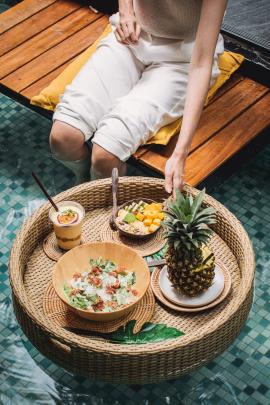 Refresh Tropical ค่าเฟ่ตกแต่งแนวธรรมชาติสไตล์บาหลีของต้นไม้และไม้ไผ่ แถมหลังร้านยังชิวด้วยสระน้ำที่สามารถแช่เท้า ถ่ายรูปกันได้เลยย ส่วนเครื่องดื่มนั้นสดชื่นไม่แพ้กัน เพราะ Refresh เน้นเครื่องดื่มผลไม้เป็นหลัก ทั้งในรูปแบบ smoothie / smoothie bowl / เมนูคั้น เมนูปั่น โซดา กาแฟ และ เมนู signature ของทางร้านอีกมากมาย