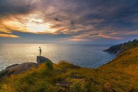 จุดชมวิวแห่งใหม่ของจังหวัดภูเก็ต มองเห็นทะเลอันดามันเกือบ 360 องศา สำหรับใครที่อยากเดินทางมายังจุดชมวิวแห่งนี้ อาจต้องเดินทางมาตั้งแต่ช่วงบ่าย ๆ เพราะหากมาหลังพระอาทิตย์ตกจะมืดมาก และเดินลำบาก โดยเริ่มต้นเส้นทางผ่านหาดในหานมาทางอ่าวเสน หรือจะเริ่มต้นที่อ่าวเสน หรือเดินขึ้นไปทางกำแพงเล็ก ๆ ก่อนถึงบ้านกระทิงรีสอร์ทก็ได้ แนะนำให้ใส่รองเท้าผ้าใบ เพราะคุณจะต้องเดินผ่านโขดหิน ซึ่งอาจเผลอลื่นและเป็นอันตรายได้ ตลอดทางคุณจะมองเห็นวิวที่ทำให้คุณต้องร้องว้าว ประมาณ 45 นาที ก็จะถึงแหลมกระทิง และอย่างที่บอกไปแล้วว่าทางกลับค่อนข้างมืด เราจึงไม่แนะนำให้อยู่ดูพระอาทิตย์ตกดิน