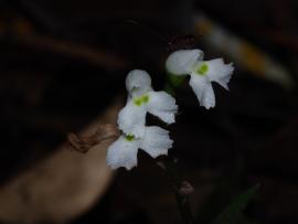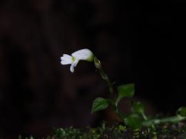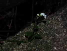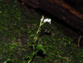 บนหินที่ชื้นๆ มีมอสปกคลุมหนาแน่น สังเกตดีๆ อาจจะพบกล้วยไม้จิ๋ว ที่ดูผิวเผินแล้วไม่น่าเชื่อว่าจะเป็นกล้วยไม้เสียด้วยซ้ำ ว่านพายแฉกน้อย เป็นกลุ่มกล้วยไม้อัญมณี ที่ผิวใบสะท้อนแสงระยิบระยับ ดอกสีขาวส่วนโคนลักษณะเป็นหลอด ปลายแยกเป็นแฉก ประวัติการค้นพบ: John Lindley ตั้งชื่อกล้วยไม้ชนิดนี้ในปี ค.ศ. 1840 ที่มาชื่อไทย: ลักษณะของกลีบปากที่ปลายแยกเป็น 2 แฉก ลักษณะทางพฤกษศาสตร์: กล้วยไม้ดินขนาดเล็ก ชอบขึ้นตามหิน ลำต้นอวบรูปทรงกระบอก เป็นข้อปล้องชัดเจน ใบ รูปไข่ ปลายแหลม โคนใบตัดหรือกลม ผิวใบเกลี้ยง มีขนาดเล็ก ดอก ขนาดเล็ก ออกเป็นช่อตั้งขึ้น มีดอกย่อย 1-2 ดอก สีขาว กลีบปากเป็น 2 แฉก กลางกลีบปากมีแต้มสีเขียวอ่อน 2 แต้มติดกัน นิเวศวิทยา: พบตามป่าดิบเขา ที่ระดับความสูง 800-900 เมตร การกระจายพันธุ์: แถบฮิมาลัย อัสสัม บังคลาเทศ เมียนมาร์ จีนตอนใต้ ไทย ลาว เวียดนาม และมาเลเซีย ข้อมูลชีววิทยาอื่นๆ: สถานภาพทางการอนุรักษ์: เอกสารอ้างอิง: orchidspecies.ocm