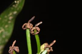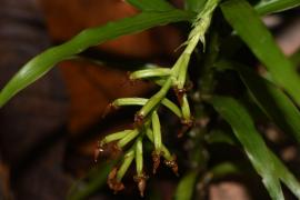 ประวัติการค้นพบ: ถูกค้นพบและตั้งชื่อโดย Robert Brown (1773-1858) นักพฤกษศาสตร์ชาวอังกฤษ ถูกตีพิมพ์ที่ Plantae Asiaticae Rariores ในปี 1969 ที่มาชื่อไทย: - ลักษณะทางพฤกษศาสตร์: กล้วยไม้ดิน ลำต้นและใบคล้ายหญ้า สูง 20-60 เซนติเมตร ใบ เรียงตัวเวียนรอบต้น รูปแถบ กว้าง 0.6-1.2 เซนติเมตร ยาว 15-30 เซนติเมตร ปลายใบแหลม ดอกออกเป็นช่อ ช่อแตกแขนง ออกจากปลายยอด มีใบประดับขนาดเล็ก ดอกสีเหลือง บานเต็มที่กว้าง 5-8 เซนติเมตร กลีบดอก มีขนาดใกล้เคียงกัน แผ่บานและลู่ไปด้านหลัง ไม่มีการพัฒนาเป็นกลีบปาก นิเวศวิทยา: พบตามป่าดิบชื้นทางภาคใต้ ออกดอกช่วงเดือนพฤษภาคม-มิถุนายน การกระจายพันธุ์: อินโดนีเซีย มาเลเซีย ข้อมูลชีววิทยาอื่นๆ: เป็นกล้วยไม้ที่มีลักษณะใกล้เคียงกับพืชที่เป็นบรรพบุรุษของพืชในวงศ์กล้วยไม้ สถานภาพทางการอนุรักษ์: - เอกสารอ้างอิง: http://www.qsbg.org/Database/Botanic_Book%20full%20option/search_detail.asp?botanic_id=1869