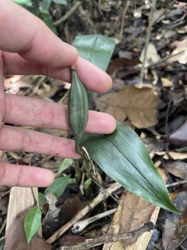 ประวัติการค้นพบ: ถูกค้นพบและตั้งชื่อโดย Joseph Dalton Hooker (1817-1911) นักพฤกษศาสตร์ชาวอังกฤษ ตีพิมพ์ที่ Exotic Flora ในปี 1823 ที่มาชื่อไทย: - ลักษณะทางพฤกษศาสตร์: กล้วยไม้ดิน ลำต้นเจริญทางด้านข้าง ไม่มีลำลูกกล้วย มีใบรูปใบหอก 3-5 ใบ ช่อดอกแบบช่อกระจะ มี 2-4 ดอก ดอกกว้าง 2.5 เซนติเมตร สีขาวครีมจนถึงแกมเขียว กลีบเลี้ยงรูปหอก ปลายแหลม กลีบดอกรูปแถบ กลีบปากรูปขอบขนาน ปลายแหลม มีสันสองสัน และมีเส้นหรือจุดสีม่วงจำนวนมาก นิเวศวิทยา: ออกดอกเดือนพฤษภาคม การกระจายพันธุ์: รัฐอัสสัม เทือกเขาหิมาลัยทางตะวันออก เนปาล ภูฏาน เทือกเขาหิมาลัยทางตะวันตก จีน เกาหลี ญี่ปุ่น หมู่เกาะริวกิว ไต้หวัน พม่า ไทย มาเลเซีย ลาว กัมพูชา เวียดนาม เกาะบอร์เนียว เกาะชวา หมู่เกาะมาลูกู เกาะซูลาเวซี เกาะสุมาตรา และเกาะนิวกินี ข้อมูลชีววิทยาอื่น ๆ: - สถานภาพทางการอนุรักษ์: พืชอนุรักษ์บัญชีที่ 2 ของอนุสัญญา CITES เอกสารอ้างอิง: กล้วยไม้้ป่า เขตรักษาพันธุ์สัตว์ปาภูหลวง http://www.orchidspecies.com/cymlancifolium.htm