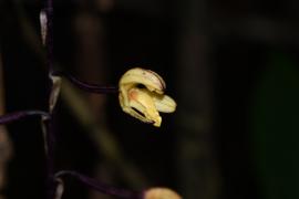 ประวัติการค้นพบ: ตีพิมพ์ในวารสาร Linnaea : Ein Journal für die Botanik in ihrem ganzen Umfange. 41(1): 57 ในปี 1876 ตั้งชื่อโดย Reichenbach, Heinrich Gustav นักพฤกษศาสตร์ชาวเยอรมัน ตัวอย่างต้นแบบถูกเก็บไว้ที่ Kew herbarium คำระบุชนิดมาจากภาษาลาติน montanus แปลว่า ภูเขา ที่มาชื่อไทย: - ลักษณะทางพฤกษศาสตร์: กล้วยไม้อาศัยรา ไม่มีลำลูกกล้วย ไม่มีใบลดรูปเป็นกาบขนาดเล็กมีม่วง ช่อดอกแทงขึ้นจากเหง้า สูงประมาณ 20-35 ซม. ช่อสีม่วง ดอกขนาดเล็กประมาณ 1 ซม. กลีบเลี้ยงและกลีบดอก สีเหลืองอ่อนแกมน้ำตาล รูปขอบขนาน ปลายมน ลีบปากรูปไข่ ปลายกลีบดอกรูปรี นิเวศวิทยา: พบในป่าดิบแล้ง ป่าเต็งรังผสมสน ขึ้นในพื้นที่ที่มีซากพืชทับถมและมีแดดร่ำไรค่อนข้างร่ม ความสูงจากระดับน้ำทะเล 600-1,300 ม. ออกดอกตุลาคม-พฤศจิกายน ระยะเวลาออกดอกสั้นมาก และจะพักตัว การกระจายพันธุ์: อินเดีย พม่า จีน ไทย มาเลเซีย ฟิลิปปินส์ ข้อมูลชีววิทยาอื่น ๆ: - สถานภาพทางการอนุรักษ์: - เอกสารอ้างอิง: [1] ฐานข้อมูลพรรณไม้ องค์การสวนพฤกษศาสตร์ เอื้องแฝงภู | Aphyllorchis montana Rchb.f. : BGO Plant Database-ฐานข้อมูลพันธุ์ไม้ องค์การสวนพฤกษศาสตร์
