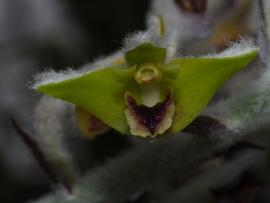 ประวัติการค้นพบ: ค้นพบโดย Carl Ludwig Willdenow (1765 –1812) นักพฤกษศาสตร์ นักเภสัชศาสตร์ และนักอนุกรมวิธานพืชชาวเยอรมัน ตีพิมพ์ใน Species plantarum ในปี ค.ศ.1805 และมีการเปลี่ยนสกุลอีกครั้ง จนต่อมาสุดท้าย ) Xin-qi Chen (1931 - ปัจจุบัน) นักพฤกษศาสตร์ชาวจีน ร่วมกับ Jeffrey James Wood (1952 - ปัจจุบัน) นักพฤกษศาสตร์ชาวอังกฤษ ได้ย้ายสกุลของกล้วยไม้นี้ให้มาอยู่ในสกุล Dendrolirium ตีพิมพ์ใน Flora of China ในปี ค.ศ. 2009 ที่มาชื่อไทย: - ลักษณะทางพฤกษศาสตร์: กล้วยไม้อิงอาศัย หรือเป็นกล้วยไม้ขึ้นบนหิน (epiphyte or lithophyte) ลักษณะมีเหง้าเลื้อย เส้นผ่านศูนย์กลาง 5 มิลลิเมตร ลำลูกกล้วยค่อนข้างกลมหรือทรงกระสวย เส้นผ่านศูนย์กลาง 6 - 8 เซนติเมตร ลำลูกกล้วยขึ้นห่างกันบนเหง้าระยะห่าง 1.5 - 5 เซนติเมตร ลำลูกกล้วยขนาดยาว 3 - 7.5 เซนติเมตร กว้าง 1.5 - 3.5 เซนติเมตร มีกาบใบหุ้ม ที่ปลายลำลูกกล้วยมีใบ 3 - 5 ใบ ใบ รูปขอบขนานแกมรี หรือรูปใบหอก ยาว 12 - 30 เซนติเมตร กว้าง 1.5 - 5 เซนติเมตร มีเส้นใบหลัก 8 - 14 เส้น ปลายใบเรียวแหลม ดอกเป็นดอกช่อ ช่อดอกออกจากโคนกอ โดยช่อดอกที่ 1 หรือ 2 เกิดจากโคนใกล้ที่อยู่ใกล้ลำลูกกล้วยเก่า ช่อดอกยาว 10 - 30 เซนติเมตร แกนกลางช่อดอกมีขนสีขาวหรือสีเหลืองแกมเทาอยู่อย่างหนาแน่น ใบประดับรูปไข่แกมรูปใบหอก ขนาด 1 เซนติเมตร มีขนสีขาวหรือสีเหลืองแกมเทาปกคลุมอยู่ ก้านดอกย่อยและรังไข่ ขนาด 2 - 3 เซนติเมตร มีขนปกคลุมหนาแน่นเช่นกัน ดอกบานเต็มที่กว้าง 2.5 เซนติเมตร กลีบเลี้ยงและกลีบดอก สีเขียวอ่อน ส่วนปลายกลีบมีขนนุ่มสีขาวหรือเหลืองอมเทา ปกคลุม กลีบเลี้ยงบน รูปใบหอก ขนาดยาว 12 มิลลิเมตร กว้าง 2 มิลลิเมตร ปลายกลีบป้าน กลีบเลี้ยงข้าง รูปใบหอกเอียงเล็กน้อย ขนาดยาว 13 มิลลิเมตร กว้าง 5 มิลลิเมตร กลีบดอกรูปแถบ ขนาดยาว 14 มิลลิเมตร กว้าง 1 มิลลิเมตร ปลายกลีบแหลม กลีบปากคล้ายรูปไข่ ขนาดยาว 11 มิลลิเมตร กว้าง 5 มิลลิเมตร มีลายปื้นสีน้ำตาลอมแดง บริเวณโคนกลีบปากหดตัวคล้ายก้ามปู 3 แฉก ขอบแต่ละแฉกเป็นคลื่น แฉกด้านข้างกึ่งรูปไข่ แฉกกลางกึ่งรูปขอบขนาน มีพื้นที่เป็นหนารูปไข่หรือรูปใบหอกขยายจากฐานถึงกลางกลีบ เส้าเกสร สีเหลือง หนา 4 มิลลิเมตร ฐานเส้าเกสร ขนาดประมาณ 4 มิลลิเมตร ปลายเป็นรูปลูกศร ฝัก รูปทรงกระบอกขนาดยาว 2.5 - 4 เซนติเมตร กว้าง 4 มิลลิเมตร มีขนสีขาวเมื่อฝักยังอ่อน นิเวศวิทยา: พบตามป่าดิบแล้งและลานหินขึ้นในที่ร่มในป่า บนต้นไม้ริมลำธารหรือขึ้นบนหิน ที่ระดับความสูงจากระดับน้ำทะเล 1,200-1,700 เมตร ออกดอกช่วงเดือน สิงหาคม-ตุลาคม การกระจายพันธุ์: จีน ฮ่องกง ภูฏาน เนปาล อินเดีย ลาว กัมพูชา เมียนมาร์ เวียดนาม และไทย ในไทยพบทางภาคตะวันออก เฉียงเหนือ ภาคตะวันออก และภาคใต้ ข้อ