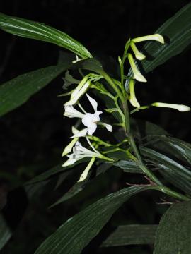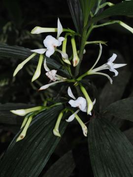 ประวัติการค้นพบ: ถูกค้นพบและตั้งชื่อครั้งแรกว่า Hysteria veratrifolia โดย Caspar Georg Carl Reinwardt (1773-1854) นักพฤกษศาสตร์ชาวเยอมัน ในปี 1825 ต่อมา Carl(Karl) Ludwig von Blume (1796-1862) นักพฤกษศาสตร์ชาวเยอรมัน-ดัตช์ ตั้งชื่อขึ้นใหม่เป็น Corymborkis veratrifolia ตีพิมพ์ที่ Tabellen en Platen voor de Javaansche Orchideen ในปี 1859 ที่มาชื่อไทย: - ลักษณะทางพฤกษศาสตร์: ลำต้นตั้งตรงหรือบิดวนเล็กน้อย สูงถึง 2 เมตร ใบจำนวนมาก ใบรูปขอบขนาน แผ่นใบพับเป็นจีบมนถี่ ช่อดอกแบบช่อกระจะแยกแขนง เกิดได้หลายช่อตามซอกใบใกล้ปลายลำ ช่อย่อยมีดอกได้ 4-10 ดอก ดอกสีขาว กลีบประดับรูปไข่หรือรูปใบหอก กลีบเลี้ยงกางออก กลีบรูปแถบหรือรูปใบหอกแคบ กลีบดอกรูปใบหอกแกมรูปไข่กลับ กลีบปากรูปคล้ายใบพาย แฉกกลางรูปไข่กว้าง ขอบจักเป็นชายครุย โคนกลีบสอบ ขอบโค้งเข้าหากัน ด้านในมีระยางค์เป็นแผ่นสอดอยู่ การกระจายพันธุ์: จีน, หมู่เกาะรีวกีว, ไต้หวัน, รัฐอัสสัม, บังคลาเทศ, เทือกเขาหิมาลัยทางตะวันออก, อินเดีย, ศรีลังกา, หมู่เกาะอันดามัน, ไทย, มาเลเซีย, ลาว หมู่เกาะนิโคบาร์, เวียดนาม, เกาะบอร์เนียว, เกาะชวา, หมู่เกาะซุนดาน้อย, เกาะมาลูกู, ฟิลิปปินส์, เกาะซูลาเวซี, เกาะสุมาตรา, หมู่เกาะคริสต์มาส, หมู่เกาะบิสมาร์ก, นิวกินี, หมู่เกาะโซโลมอน, ฟีจี, ซามัว, หมู่เกาะซานตาครูซ, ตองงา, วานูวาตู, หมู่เกาะแคโรไลน์ และหมู่เกาะมาเรียนา นิเวศวิทยา: ดอกบานเดือนมิถุนายนถึงเดือนกันยายน พบตามป่าดิบชื้นทั่วทุกภาค ข้อมูลชีววิทยาอื่น ๆ: - สถานภาพทางการอนุรักษ์: - เอกสารอ้างอิง: [1] หนังสือบัญชีรายการทรพย์สินชีวภาพกล้วยไม้ไทย ส่วนที่ 2 [2] http://www.orchidspecies.com/coryveratrifolia.htm