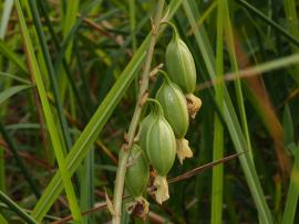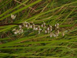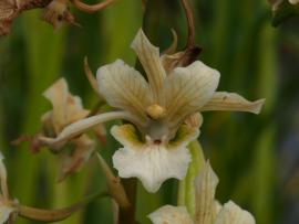 ด้วยลักษณะของลำต้นที่เป็นหัวกลมแบนแช่น้ำอยู่ได้ บนแพหญ้ากลางบึง เหมือนอึ่งอ่างนอนแช่ในแอ่งอย่างมีความสุข จึงตั้งชื่อว่า ว่านอึ่งอ่าง เป็นกล้วยไม้ที่ขึ้นในที่แฉะน้ำ ดอกออกเป็นช่อยาวถึง 2 เมตร มีจำนวนดอกมากกว่า 50 ดอก ดอกสีครีมมีลายสีน้ำตาล บานช่วงเดือนธันวาคม ที่สวนพฤกษศาสตร์ระยอง ต้องล่องเรือไปชม ประวัติการค้นพบ: David Don นักพฤกษศาสตร์ชาวอังกฤษ ตั้งชื่อกล้วยไม้ชนิดนี้เป็นคนแรกในปี ค.ศ. 1825 ด้วยชื่อ Bletia bicallosa ส่วนชื่อที่ยอมรับว่าถูกต้องตั้งโดยนักพฤกษศาสตร์ชื่อ Peter Francis Hunt และ Victor Samuel Summerhayes ในปี ค.ศ. 1966 ที่มาชื่อไทย: ลักษณะของหัวที่แช่อยู่น้ำ ลักษณะทางพฤกษศาสตร์: กล้วยไม้ดิน สูง 60-80 ซม. ใบ รูปแถบ กว้าง 1.5 ซม. ยาว 60 ซม. ดอก ออกเป็นช่อ สูง 60-80 ซม. จำนวน 12 -20 ดอกต่อช่อ ดอกบานเต็มที่ กว้าง 3-3.3 ซม. กลีบเลี้ยงและกลีบ ดอกสีเขียวครีม มีลายสีน้ำตาล กลีบปากสีเขียวมีลายสีม่วง นิเวศวิทยา: ชอบขึ้นตามที่ชื้นแฉะ โล่งเปิด การกระจายพันธุ์: แถบฮิมาลัย เนปาล บังคลาเทศ เมียนมาร์ ไทย มาเลเซีย ชวา สุมาตรา ฟิลิปปินส์ นิวกีนี และออสเตรเลีย ข้อมูลชีววิทยาอื่นๆ: หัวและเหง้า ฝนกับน้ำมะนาวแก้แมลงสัตว์กัดต่อย สถานภาพทางการอนุรักษ์: เอกสารอ้างอิง: orchidspecies.com