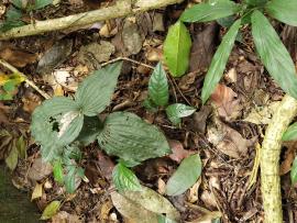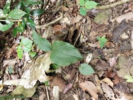 ประวัติการค้นพบ: ถูกค้นพบและตั้งชื่อครั้งแรกโดย John Lindley (1799-1865) นักพฤกษศาสตร์ชาวเยอรมัน ในสกุล Cnemidia ต่อมาถูกเปลี่ยนเป็นสกุล Tropidia โดย Carl(Karl) Ludwig von Blume (1796-1862) นักพฤกษศาสตร์ชาวเยอรมัน-ดัตช์ ตีพิมพ์ที่ Collection des Orchidées le plus remarquables de l'Archipel Indien et du Japon ในปี 1859 ที่มาชื่อไทย: - ลักษณะทางพฤกษศาสตร์: ลำต้นตั้งตรง สูงประมาณ 18 เซนติเมตร เหง้าสีขาว มีข้อปล้อง 7.5-8 เซนติเมตร ใบพับจีบ มี 2 ใบ เรียงตรงข้าม รูปไข่แกมรี กว้าง 7.3-9.8 เซนติเมตร ยาว 14.2-15.7 เซนติเมตร ปลายเรียวแหลม โคนใบแผ่หุ้มรอบลำต้น ช่อดอกแบบช่อกระจะเเน่น ออกที่ปลายลำต้น ก้านช่อดอกตั้งตรง ยาว 2-6 เซนติเมตร แกนช่อดอกยาว 1-2 เซนติเมตร ช่อเเน่น มี 20-25 ดอก ใบประดับย่อยรูปใบหอก ยาว 1-1.24 เซนติเมตร กว้างประมาณ 1 มิลลิเมตร ปลายแหลม ดอกเส้นผ่านศูนย์กลางประมาณ 9 มิลลิเมตร ไม่พลิกกลับ ปลายกลีบปากสีส้ม กลีบเลี้ยงเชื่อมติดกัน ด้านนอกกลีบมีสันนูน กลีบเลี้ยงด้านบนรูปใบหอก กว้างประมาณ 2.5 มิลลิเมตร ยาว 1.12-1.15 เซนติเมตร ปลายแหลม กลีบเลี้ยงด้านข้างรูปใบหอกแกมรูปสามเหลี่ยม กว้าง 5-6 มิลลิเมตร ยาว 1.15-1.69 เซนติเมตร ปลายแยกเป็น 2 แฉก โคนเชื่อมกันเป็นเดือย เดือยรูปทรงกระบอก ยาวประมาณ 4 มิลลิเมตร ปลายมน กลีบดอกรูปใบหอก กว้าง 3.2-3.5 มิลลิเมตร ยาว 0.9-1 เซนติเมตร กลีบปากรูปรี กว้าง 4-5 มิลลิเมตร ยาว 7-10 มิลลิเมตร ปลายแหลม โคนกลีบปากมีสันที่ด้านข้างทั้งสองด้าน เส้าเกสรรูปคล้ายสามเหลี่ยม ยาว 7.1-8.2 มิลลิเมตร ปลายแยกเป็น 2 แฉก ฝาปิดกลุ่มเรณูรูปใบหอกกลับ กว้างประมาณ 1 มิลลิเมตร ยาวประมาณ 4 มิลลิเมตร กลุ่มเรณูแบ่งเป็น 2 กลุ่ม กว้างประมาณ 1 มิลลิเมตร ยาวประมาณ 2.5 มิลลิเมตร ก้านชูกลุ่มเรณูรูปแถบ ยาว 5-6 มิลลิเมตร แป้นเหนียวรูปใบหอกกลับ ยาวประมาณ 2 มิลลิเมตร ก้านดอกและรังไข่ ยาว 4-12 มิลลิเมตร ฝักรูปกระสวย เส้นผ้านศูนย์กลาง 4-5 มิลลิเมตร การกระจายพันธุ์: อินเดีย, พม่า, ไทย, มาเลเซีย และอินโดนีเซีย นิเวศวิทยา: พบบริเวณป่าดิบเขาต่ำ ที่ระดับความสูง 877 เมตร จากระดับน้ำทะเล ออกดอกเดือนสิงหาคม ติดฝักเดือนตุลาคม ข้อมูลชีววิทยาอื่น ๆ: - สถานภาพทางการอนุรักษ์: - เอกสารอ้างอิง: กรกช ดวงดี. 2554. ความหลากหลายของกล้วยไม้ตามเส้นทางขึ้นยอดภูกระดึง อุทยานแห่งชาติภูกระดึง จังหวัดเลย. วิทยานิพนธ์. จุฬาลงกรณ์มหาวิทยาลัย