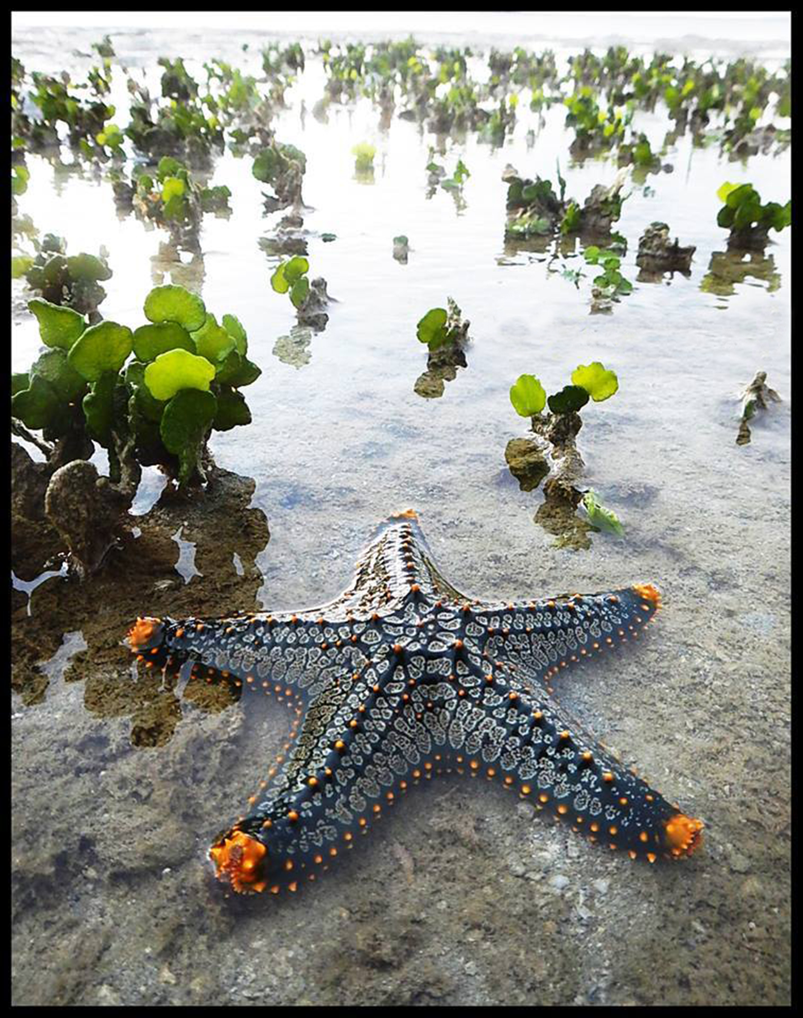 ดาวทะเลปุ่มใหญ่ พบอาศัยบนพื้นทรายในแนวสาหร่ายใบมะกรูด (Halimeda macroloba) บริเวณน้ำตื้น ของเกาะลิดี จ.สตูล