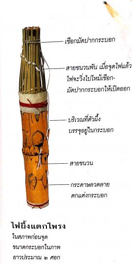ตัวผึ้งทำจากเมล็ดสำโรงบรรจุดินดำ รังผึ้งสานด้วยไม้ไผ่และผูกด้วยเชือกมัดปากกระบอก