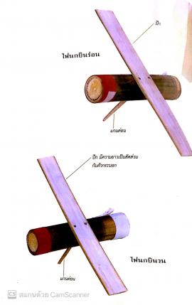 เป็นทรงกระบอกทำจากไม้ไผ่หรือวัสดุอื่น มีปีกและแกนด่อน