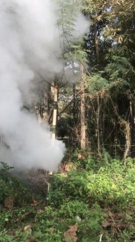 ทรงกระบอกทำจากไม้ไผ่ยาวประมาณ 2 เมตร