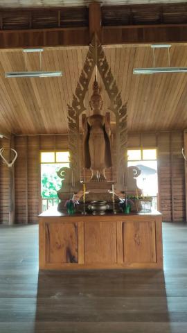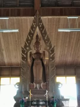 องค์พระสูงประมาณ 80 นิ้ว ฐานรูปสีเหลี่ยมจัตุรัส สูงประมาณ 15 นิ้ว ลักษณะพิเศษทางพุทธศิลป์คือ เป็นลักษณะการแกะสลักพระพุทธรูปตามแบบล้านช้าง