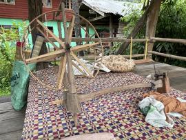 หลา หรือ ไน เป็นอุปกรณ์สำหรับการกรอเส้นด้ายเข้าหลอด หรือเป็นอุปกรณ์ในการตีเกลียวเส้นด้ายและควบตีเกลียวเส้นด้าย และเป็นเครื่องมือหนึ่งที่ใช้ในกระบวนการทอผ้าฝ้ายของชุมชนไทญ้อ บ้านโพน อำเภอท่าอุเทน จังหวัดนครพนม โดยการใช้งานหลาของชาวไทญ้อบ้านโพนจะใช้เพื่อเข็นหรือปั่นปุยฝ้ายให้เป็นเส้นฝ้าย และปั่นเส้นฝ้ายเข้าหลอดเพื่อนำไปใส่กระสวย ทำเป็นเส้นพุ่งสำหรับทอผ้า ลักษณะโครงสร้างของหลาประกอบด้วย กงล้อขนาดใหญ่ มีขา มีฐานยาวประมาณ 80-100 เซนติเมตร ที่จับสำหรับหมุนด้วยมือ เรียกว่า แขนหลา เพื่อให้กงล้อหมุนรอบได้ กงล้อนี้มีสายพานโยงไปอีกด้านหนึ่ง เรียกว่า สายหลา ส่วนหัวหลาจะอยู่ด้านซ้ายของวงล้อ ที่หัวหลาจะมีแกนเหล็กเล็ก ๆ เรียก เหล็กไน ที่วางอยู่บนหูหลา เมื่อหมุนกงล้อ เหล็กไนก็จะหมุนตามอย่างเร็ว โครงสร้างของหลาจะทำจากไม้เนื้อแข็ง ส่วนวงล้อนั้นประกอบจากซี่ไม้ไผ่ ซึ่งหลา หรือ ไน นี้เป็นอุปกรณ์ที่กลุ่มเข็นฝ้ายบ้านโพน ยังคงอนุรักษ์และสืบสานเครื่องมือดั้งเดิมนี้ในการเป็นส่วนหนึ่งในการสร้างสรรค์การทอผ้าของชุมชนอย่างยั่งยืน