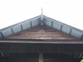 หน้าจั่วรูปพระอาทิตย์ ปรากฏบนหน้าจั่วของศาลาการเปรียญไม้หลังใหม่ ภายในวัดคามวาสีบ้านโพน อำเภอท่าอุเทน จังหวัดนครพนม เป็นแผงไม้รูปสามเหลี่ยม สร้างขึ้นจากองค์ประกอบของชิ้นไม้ ในลักษณะต่างๆ โดยมีรูปลักษณะคล้ายพระอาทิตย์ครึ่งดวงโผล่พ้นขอบฟ้า มีรัศมี เส้นรัศมีพระอาทิตย์ ทำด้วยไม้แบบตีเว้นช่องให้อากาศภายใต้หลังคาถ่ายเทได้ ใช้ประโยชน์เพื่อประกบปิดตรงส่วนที่เป็นโพรง ของหลังคาทางด้านสกัดหรือด้านขื่อของศาลาการเปรียญ เพื่อป้องกันลม แดด ฝน ขณะเดียวกันก็เป็น ที่ระบายลมของหลังคาไปด้วย