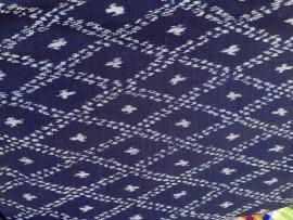 เป็นการเอาเชือกมามัดด้ายหรือมัดเส้นไหมตามลวดลายที่ได้ออกแบบไว้ สามารถทำได้ดีทั้งผ้าฝ้ายและผ้าไหม แล้วจึงนำไปขึงเข้ากับ “โฮงหมี่” เชือกที่ใช้มัดส่วนที่ไม่ต้องการให้ติดสี เรียกว่าการ “โอบ” ซึ่งปัจจุบันหันมาใช้เชือกฟางพลาสติกแทน เพราะหาได้ง่ายกว่า ตำแหน่งที่มัดให้เกิดลวดลายนั้น จะต้องอาศัยทักษะของช่างหมี่ที่ชำนาญและมีความแม่นยำ เพื่อให้ได้ลวดลายที่ชัดเจนและต้องการก่อนที่จะเข้าสู่กระบวนการทอในขั้นตอนต่อไป การทอผ้านั้นสะท้อนถึงวิถีชีวิตของชาวบ้านในแถบภาคอีสานได้เป็นอย่างดี เพราะโดยส่วนใหญ่ชาวบ้านมักจะทำเกษตรกรรม ต้องมีเวลาว่างจากการทำนา ผู้หญิงก็มักจะมาทอผ้า โดยการทำผ้ามัดหมี่ของไทญ้อบ้านโพน มักเป็นลายที่ได้แรงบันดาลใจมาจากธรรมชาติที่อยู่ใกล้ตัว เช่น ลายนกยูง ลายบายศรี เป็นต้น นอกจากนี้ยังมีหลายลายขอเจ้าฟ้าสิริวัณณวรีฯ ที่สมเด็จพระเจ้าลูกเธอเจ้าฟ้าสิริวัณณวรี นารีรัตนราชกัญญา ได้ประทานลายผ้าเป็นของขวัญปีใหม่ อย่างไรก็ดีสิ่งที่น่ากังวลใจก็คือในบ้านโพนนั้นยังขาดเยาวชนที่สนใจและสืบทอดการทำผ้ามัดหมี่อยู่นั่นเอง