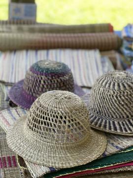 หมวกสานจากต้นกก เป็นผลิตภัณฑ์จักสานโดยใช้วัสดุจากธรรมชาติอย่างต้นกก ซึ่งหาได้ตามในบ้านโพนโดยนำต้นกกมาตากแห้ง แล้วจึงนำไปสานด้วยมือให้เป็นหมวกที่มีปีกรอบฐาน ไว้ใส่เพื่อความสวยงาม แข็งแรง มีน้ำหนักเบา และระบายอากาศได้ดี