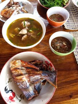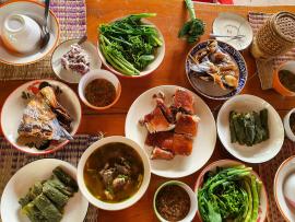 ​泰瑶的饮食,不管是用来招待客人的特制美食,还是平常百姓家的家常饭,总会配有一个小辣碟和蔬菜。这种辣椒酱叫做香菜辣椒酱,是当地流传已久的一种辣酱,当地人几乎天天都会做一些这个辣酱,可以配上所有的菜肴一起吃,不管是烤的、煮的、蒸的,或者用焯熟的新鲜蔬菜蘸着吃。