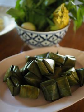 กรรมวิธีการทำแป้งขนมเทียนแก้ว (ก) มีขั้นตอนดังนี้ 1. ใส่น้ำตาลทรายและน้ำลอยดอกมะลิลงในหม้อ นำขึ้นตั้งไฟ เคี่ยวจนเป็นน้ำเชื่อม ปิดไฟ ยกลงจากเตา พักทิ้งไว้จนเย็น 2. ผสมแป้งถั่วเขียวและน้ำลอยดอกมะลิให้เข้ากัน กรองด้วยตะแกรง จากนั้นเทใส่กระทะทองเหลือง ใส่น้ำเชื่อมที่เตรียมไว้ ยกขึ้นตั้งไฟอ่อน กวนจนส่วนผสมแป้งสุกและใส ปิดไฟ ยกลงจากเตา พักไว้จนอุ่น 3. ตักส่วนผสมแป้งลงในกรวยใบตอง ตามด้วยไส้ ห่อเป็นทรงสามเหลี่ยมให้สวยงาม หรือวางไส้ขนมลงในกระทงใบตอง ตามด้วยส่วนผสมแป้งขนม 4. เรียงลงในชุดนึ่ง จากนั้นนำขนมไปนึ่งด้วยไฟแรงที่มีน้ำเดือดพล่าน นึ่งนานประมาณ 30 นาที หรือจนขนมสุก ปิดไฟ นำออกจากชุดนึ่ง