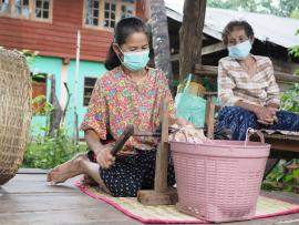 การอิ้วฝ้าย เป็นกิจกรรมการท่องเที่ยวชุมชนที่ชาวไทญ้อบ้านโพนนำมาสาธิตและจัดกิจกรรมให้นักท่องเที่ยวหรือผู้เยี่ยมเยือนเข้ามามีส่วนร่วมในการเรียนรู้วิธีการอิ้วฝ้าย ซึ่งชาวไทญ้อบ้านโพนจะจัดเตรียมเครื่องอิ้วฝ้ายและฝ้ายไว้ให้และมีปราชญ์ชาวบ้านกลุ่มเข็นฝ้ายบ้านโพน คือ คุณยายวัฒนา สุวรรณมาโจ มาสาธิตและอธิบายวิธีการอิ้วฝ้ายให้นักท่องเที่ยวหรือผู้เยี่ยมเยือนเข้ามาเรียนรู้และทดลองปฏิบัติ ซึ่งการอิ้วฝ้ายเป็นภูมิปัญญาที่สืบทอดมาจากบรรพบุรุษของชาวไทญ้อบ้านโพนในกระบวนการ กลางน้ำเพื่อให้ได้เส้นฝ้ายก่อนมีการนำไปทอผ้าฝ้ายและแปรรูป โดยการอิ้วฝ้ายเป็นการใช้เครื่องแยกเปลือกปุยฝ้ายออกจากเมล็ดฝ้าย เมื่อเอาฝ้ายทั้งเมล็ดป้อนเข้าตรงกลางแล้วหมุน เส้นใยฝ้ายจะถูกดึงเข้าไป เมล็ดซึ่งโตจะถูกรีดหลุดออกมาอีกด้านหนึ่ง ซึ่งกิจกรรมการอิ้วฝ้ายนี้เป็นกิจกรรมการอนุรักษ์และสืบสานกระบวนการและการใช้เครื่องมือดั้งเดิมนี้ในการเป็นส่วนหนึ่งในการสร้างสรรค์การทอผ้าฝ้ายของชุมชนบ้านโพนอย่างยั่งยืน และสามารถเพิ่มมูลค่ากิจกรรมการท่องเที่ยวชุมชนและสร้างรายได้ให้กับคนในชุมชนได้