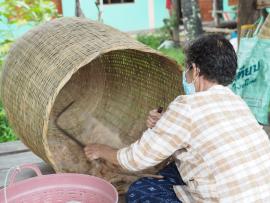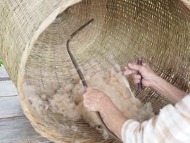การดีดฝ้าย คือ การทำให้ฝ้ายฟูขึ้นปุยก่อนนำไปม้วนเพื่อรอการเข็นฝ้ายต่อไป การดีดฝ้ายทำเพื่อแยกสิ่งตกค้างออกเพื่อให้เส้นฝ้ายสะอาดขึ้น โดยจะใช้อุปกรณ์ที่เรียกว่า “กงดีดฝ้าย” ที่มีลักษณะคล้ายคันธนูแล้วดีดคันเบ็ดหรือเชือกที่ขึงไว้ให้สั่นกระตุกอย่างต่อเนื่อง เพื่อให้ฝ้ายกระจายตัว ฟู และขึ้นปุยละเอียด หากนักท่องเที่ยวหรือผู้ที่สนใจอยากเรียนรู้วิธีการดีดฝ้าย สามารถร่วมกิจกรรมการดีดฝ้ายได้ ซึ่งนักท่องเที่ยวจะได้ลองทำการดีดฝ้ายด้วยตนเองอีกด้วย