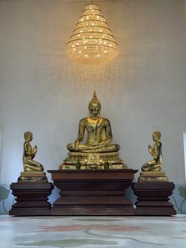 เมื่อเดินทางมาถึงวัดคามวาสี หากมีโอกาสขอแนะนำให้เข้านมัสการพระพุทธประทีปพระคู่บ้านโพนซึ่งเป็นที่ได้รับบรรจุพระสารีริกธาตุไว้ในพระเศียรพระ โดยประดิษฐานไว้ในสิมโบราณหรือโบสถ์ของวัดคามวาสี บ้านโพน อำเภอท่าอุเทน จังหวัดนครพนม พระพุทธประทีปเป็นพระที่ชาวบ้านเคารพนับถือมาก ด้วยเหตุที่มีความอัศจรรย์เกิดขึ้นในขณะที่หล่อพระและเททอง คือนอกบริเวณวัดมีฝนตกฟ้าคะนองแต่ในวัดและบริเวณ ที่หล่อพระไม่มีฝนตกเลย