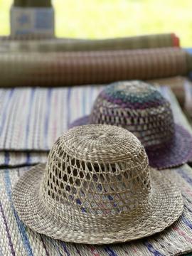 หมวกสานจากต้นกก เป็นผลิตภัณฑ์ของฝากจากกลุ่มทอเสื่อกกของชุมชนไทญ้อบ้านโพน อำเภอท่าอุเทน จังหวัดนครพนม โดยมีการออกแบบและสร้างสรรค์ผลิตภัณฑ์ โดยนำต้นกกพันธุ์น้ำจืด (กกกลม) ที่มีอยู่ในชุมชนบ้านโพน