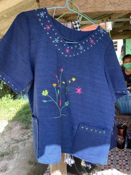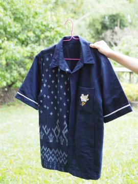 เสื้อเย็บมือจากผ้าฝ้ายมัดย้อม