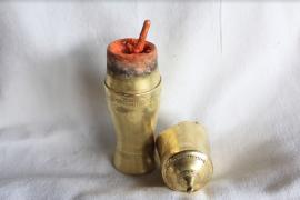 “เต้าปูน” ทำจากโลหะชนิดต่าง ๆ ตามฐานะ เช่น ทองดอกบวบ ทองเหลือง เป็นต้น เป็นอุปกรณ์ที่ใช้ใส่ปูนแดงกินหมาก