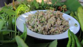 ชาวไทยเบิ้งมัก ขึ้นภูเขาไปขุดหาหน่อไม้ในป่า แกงหน่อไม้จะใช้น้ำยอดนางคั้นเข้มข้น และใช้เครื่องแกงเผ็ดสูตรเด็ดของชาวไทยเบิ้งเป็นส่วนผสม ปรุงเค็มด้วยน้ำปลาร้า บ้างโอกาสมักเหมือด(ผสม) กับผักชนิดอื่นด้วย เช่น แกงเหมือดกับชะอม แกงเหมือดเห็ดป่า หรือจะเหมือด