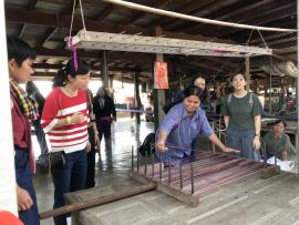 “การทอหูก” หรือการทอผ้ากี่โบราณ ภูมิปัญญา เก่าแก่ของชาวไทยเบิ้ง บ้านโคกสลุง ชาวไทยเบิ้งจะ เรียกการทอผ้าว่าการทอหูก ซึ่งลักษณะของการทอหูก คือการใช้กี่มือแบบโบราณเพื่อการถักทอผ้า เอกลักษณ์ ของหูกคือการติดตั้งโครงสร้าง