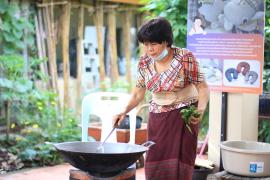 “กระด้ง” ใช้ฝัดข้าว เพื่อแยกสิ่งที่ไม่ต้องการออกจากเมล็ดข้าว เป็นเครื่องจักสานที่ทำจากไม้ไผ่ และเสริมความแข็งแรงบริเวณขอบกระด้งด้วยไม้ชงโคและผูกด้วยหวายเพิ่มความแข็งแรงและสวยงาม