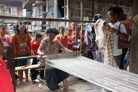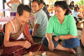 “การทอหูก” หรือการทอผ้ากี่โบราณ ภูมิปัญญา เก่าแก่ของชาวไทยเบิ้ง บ้านโคกสลุง ชาวไทยเบิ้งจะ เรียกการทอผ้าว่าการทอหูก ซึ่งลักษณะของการทอหูก คือการใช้กี่มือแบบโบราณเพื่อการถักทอผ้า เอกลักษณ์ ของหูกคือการติดตั้งโครงสร้าง