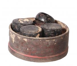 เป็นไม้ ๒ ท่อน ยาวเท่ากันเจาะรูทั้ง ๒ แล้วร้อยเชือกเข้าหากัน
