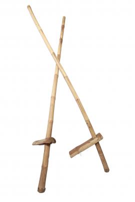 เป็นท่อนยาวมีขอคล้ายจอบแบนตรงหัวไม้ เป็นไม้สีน้ำตาล